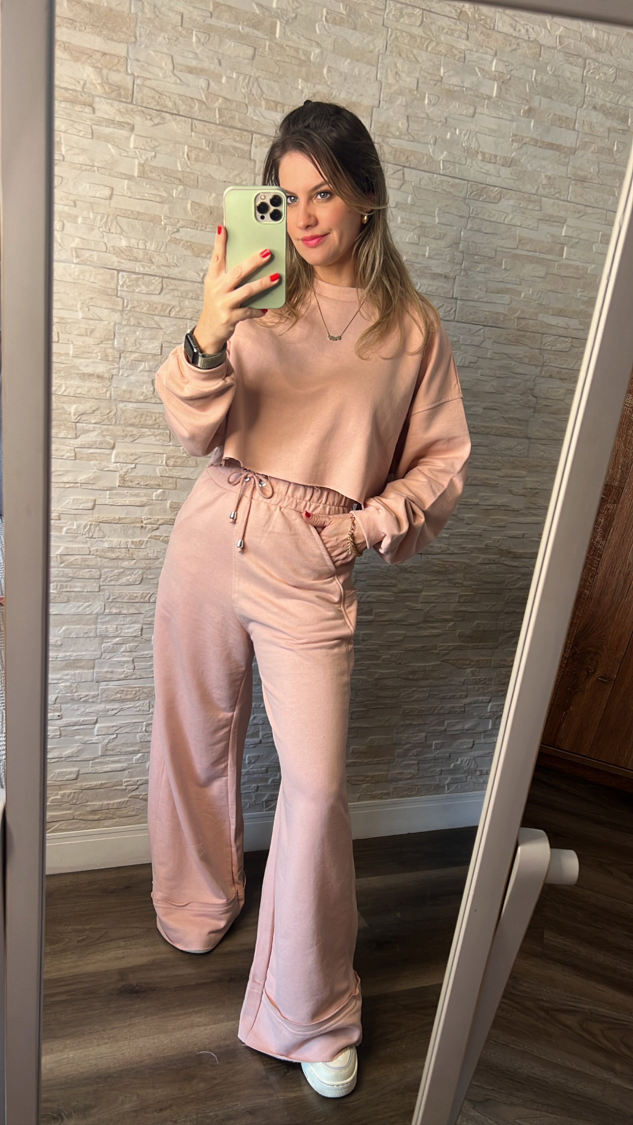 Conjunto moletom alta gramatura( manga longa cropped e calça pantalona com elástico na cintura e bolso faca..