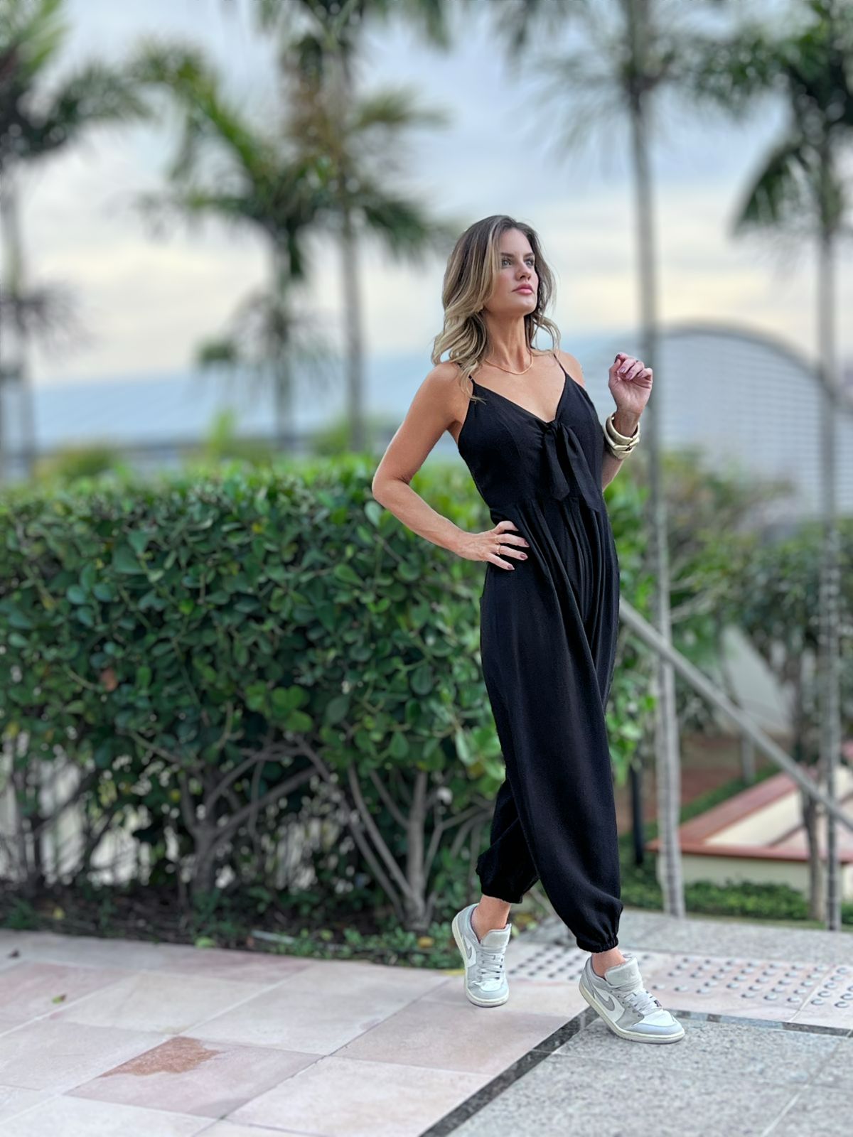 Possui alças reguláveis que permitem melhor ajuste, detalhe de amarração no busto que proporciona um charme pra peça, com pregas frontais que partem da cintura e valorizam a silhueta.